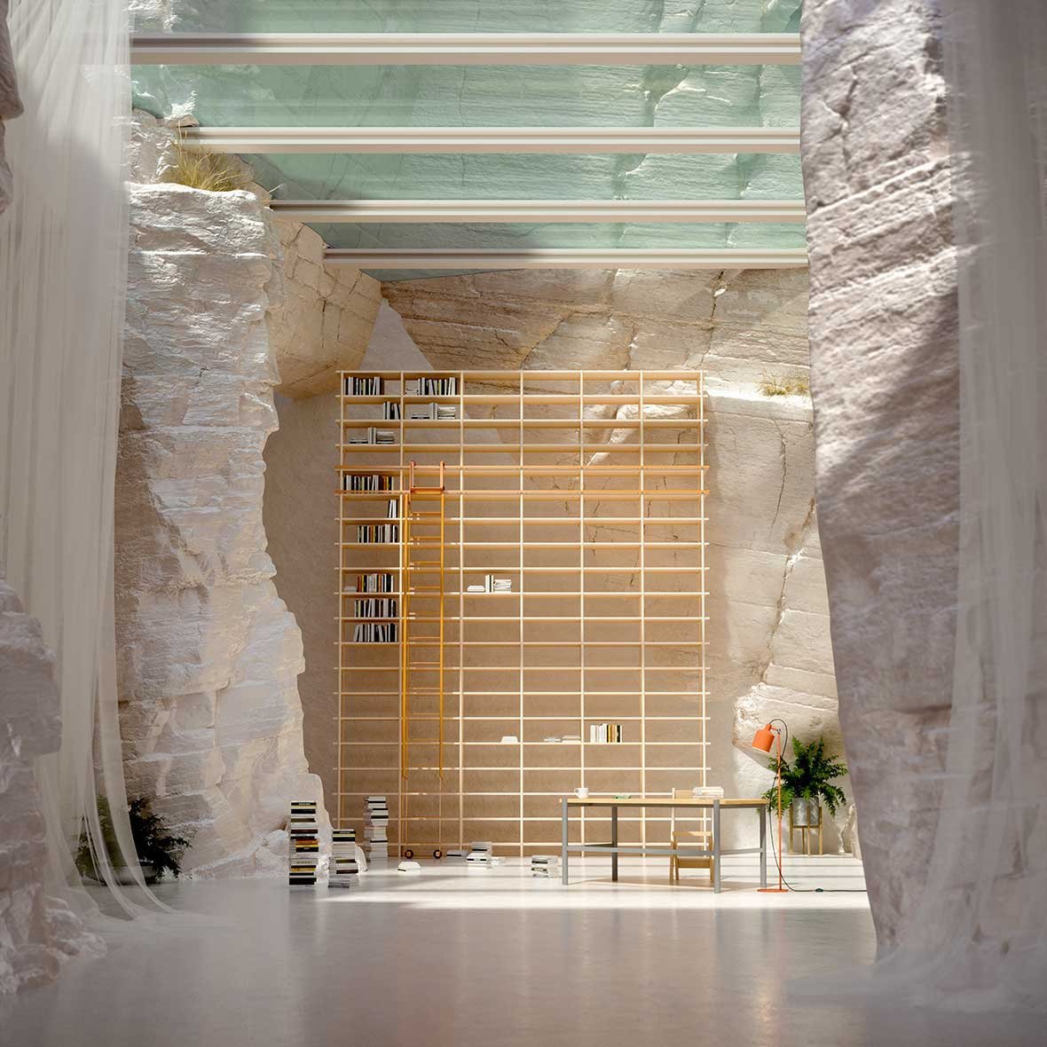 A Fantasy Cave Residence Is Designed to Showcase a Bookcase