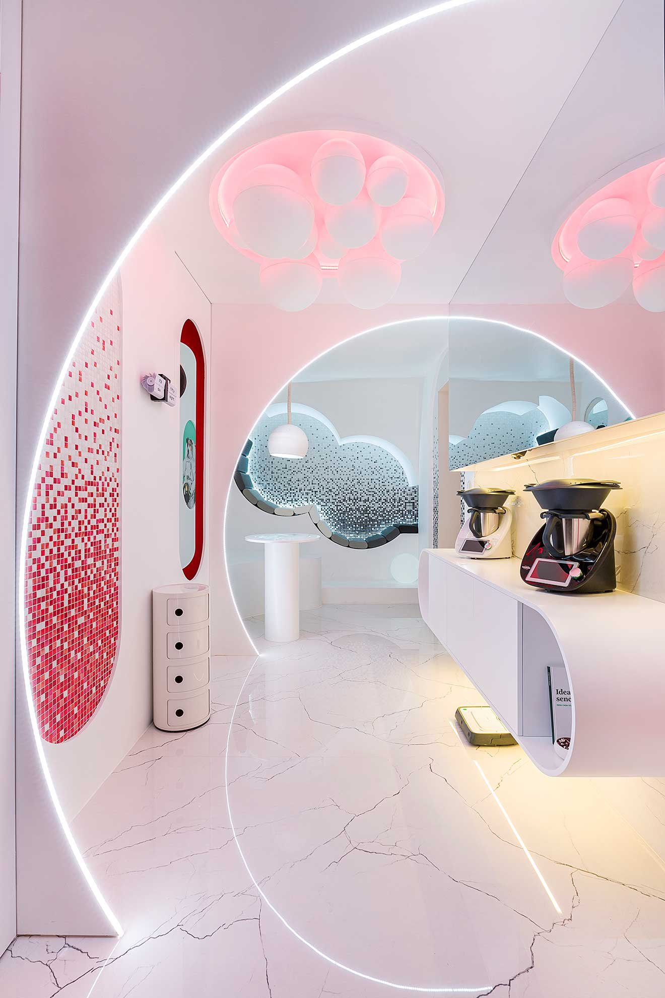 Madrid, Spain El proyecto para la 30ºedición de Casa Decor ha sido inspirado por las formas de Thermomix tanto desde un punto de vista visual como de contenido. La sinuosidad de la estructura se ha trasladado desde el robot de cocina a todo el espacio creando un ambiente único, living/cocina, que …