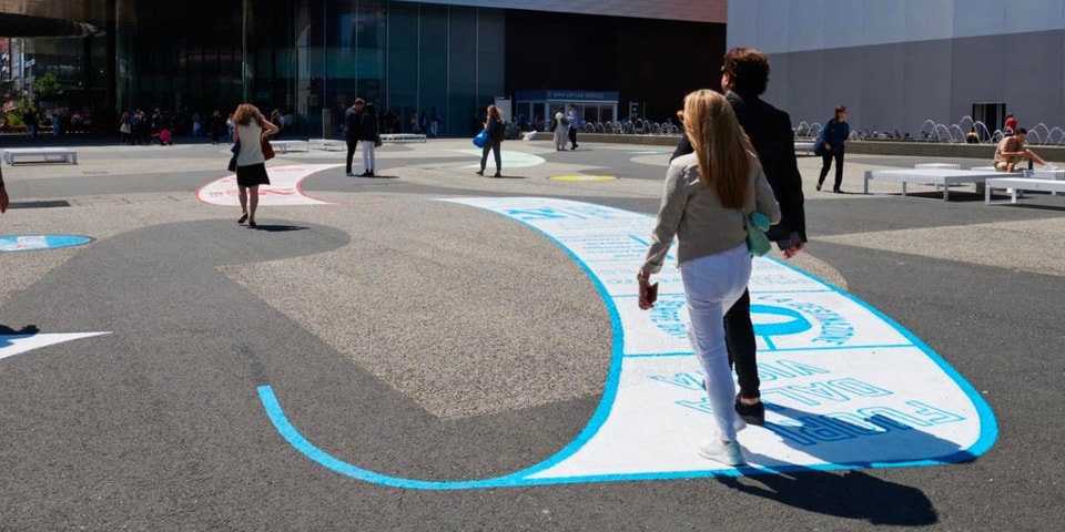 Lawrence Weiner’s ‘OUT OF SIGHT’ Installation Is Being Exhibited at the Entrance of Art Basel