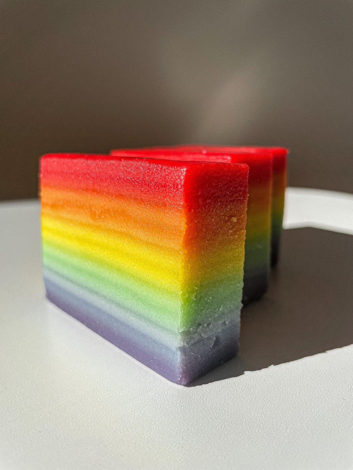 Colorful, jiggly, bouncy. If you didn’t know better, you would think I was describing something inedible, or maybe jello. Instead, it describes the infinitely delectable, oddly addicting Lady Wong Rainbow Lapis—lapis means layers in Indonesian and Malay, and you eat the traditional kuih “cake” …