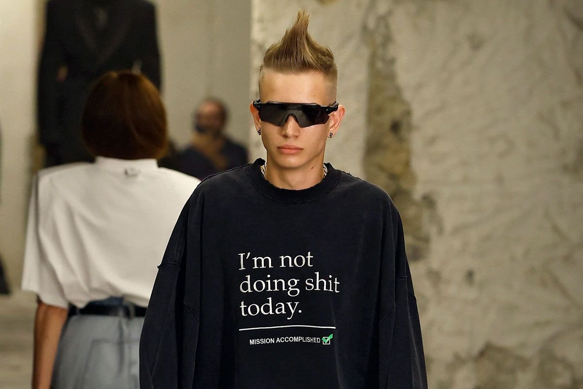As the old adage goes, a good graphic tee is worth a thousand words. Judging from the tagline-bearing tops at Vetements‘ Spring/Summer 2023 show, it …
