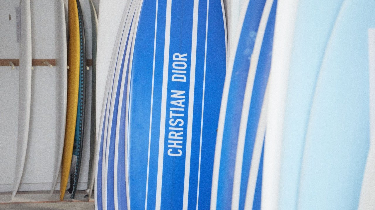Dior presenta una tavola da surf pazzesca vestita con la Toile de Jouy