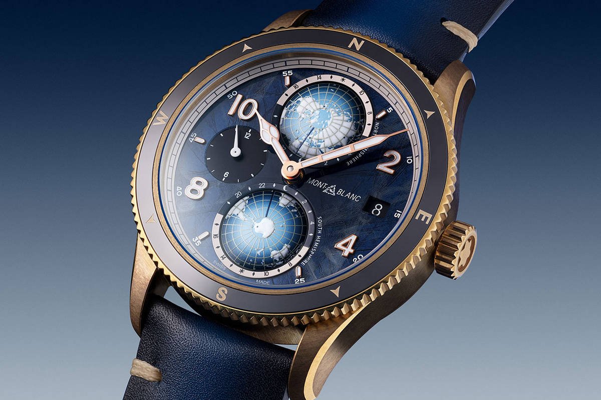Montblanc has launched a bronze Oxygen-free 1858 Geosphere that gets a smaller, 42mm case and a special dial with the brand’s new blue glacier pattern