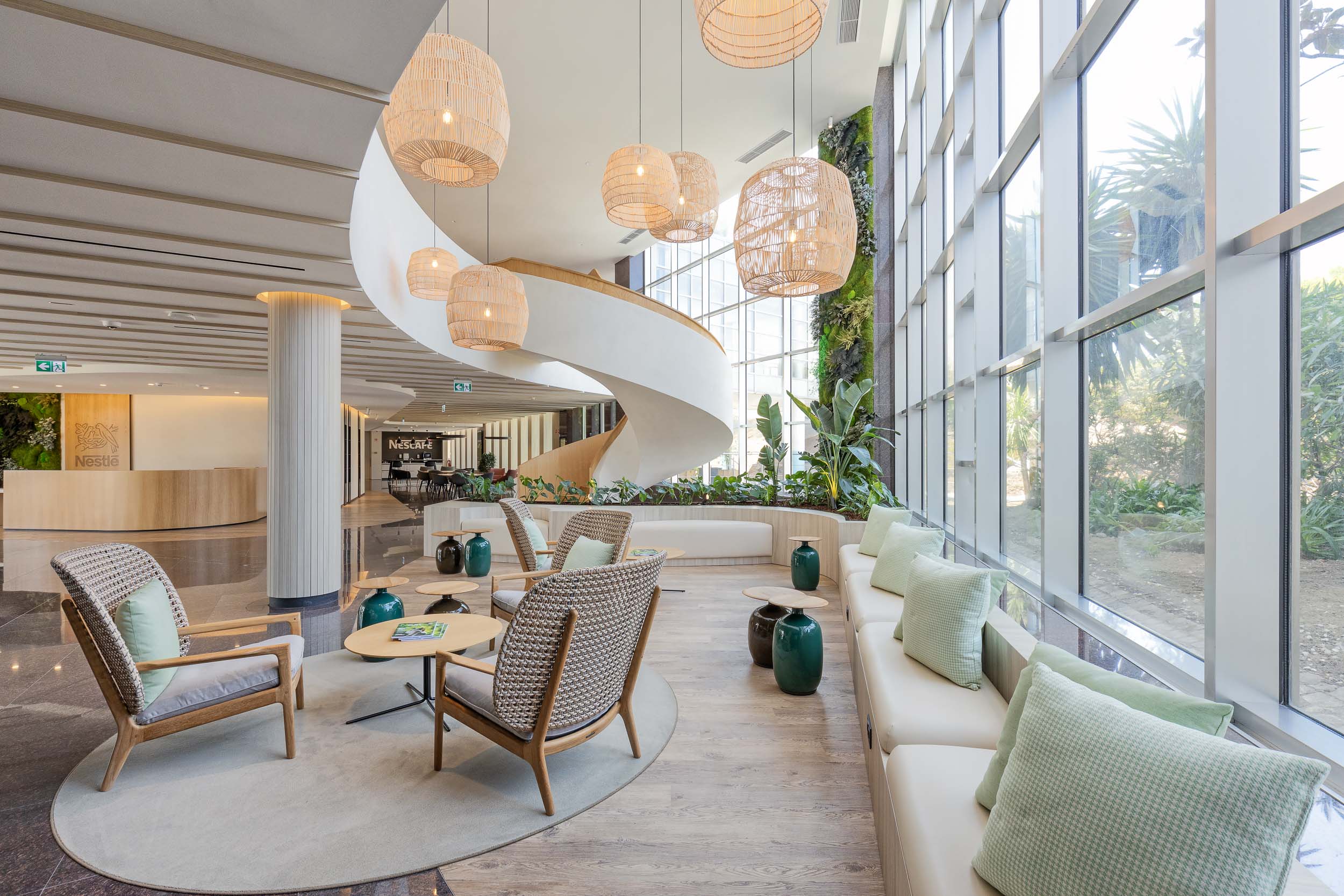 Lisbon, Portugal The renovation of the Nestlé Campus aimed to encourage a sense of community and interaction with nature. In the design outlined for the new space, three distinct core areas stand out: the Landing Zones, the Social and the Workplace. The landing zone is in the distribution core for the …