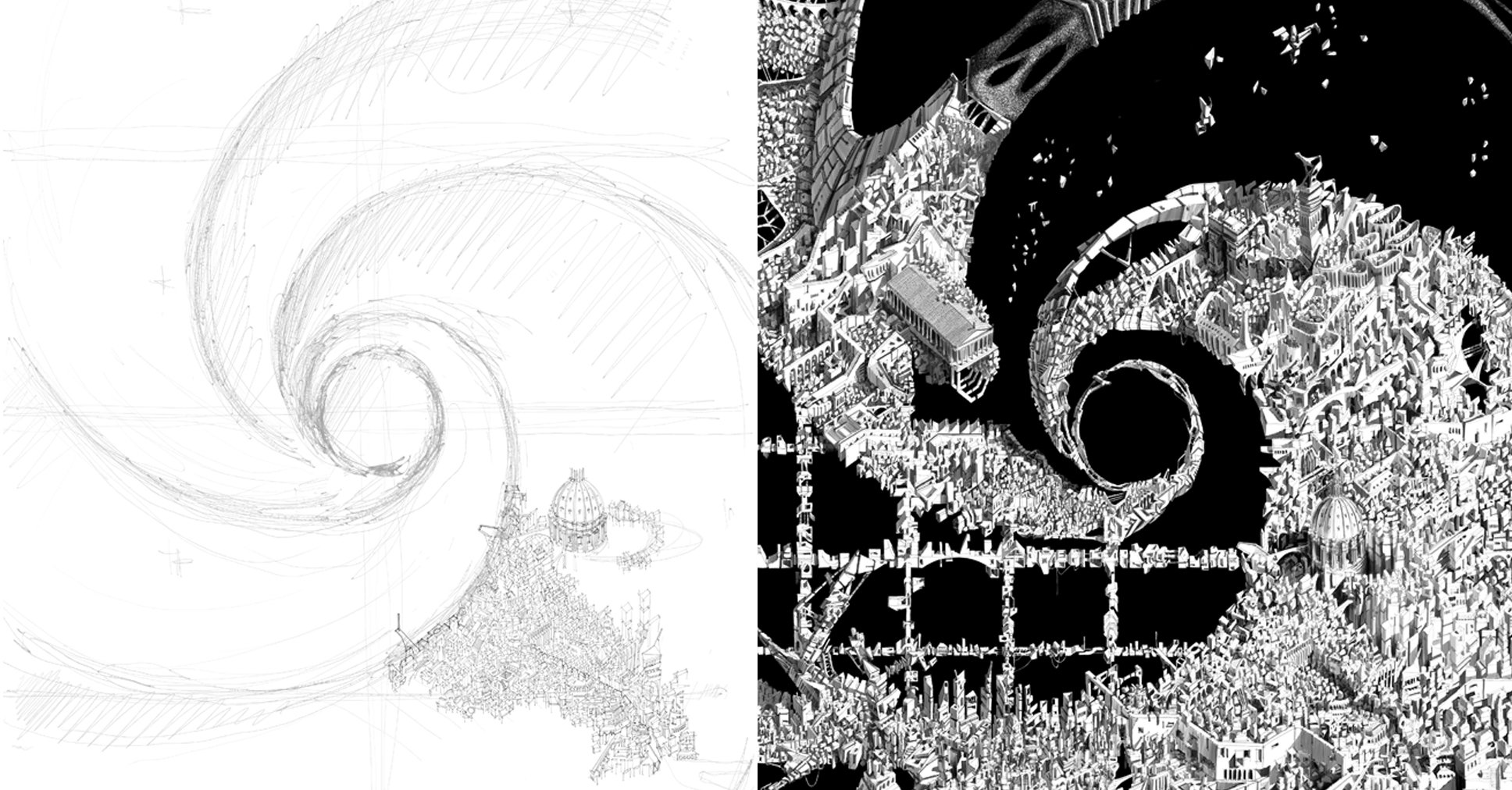 The spiralling image of an urban continuum captures the alarming fragility of the present moment in a terrifyingly beautiful way. Sign up to be informed when the next One Drawing Challenge competition opens for submissions. Be sure to check out the rest of this year’s extraordinary Winners and …